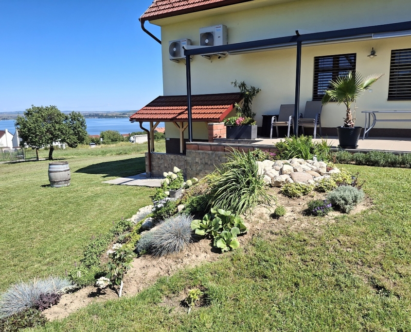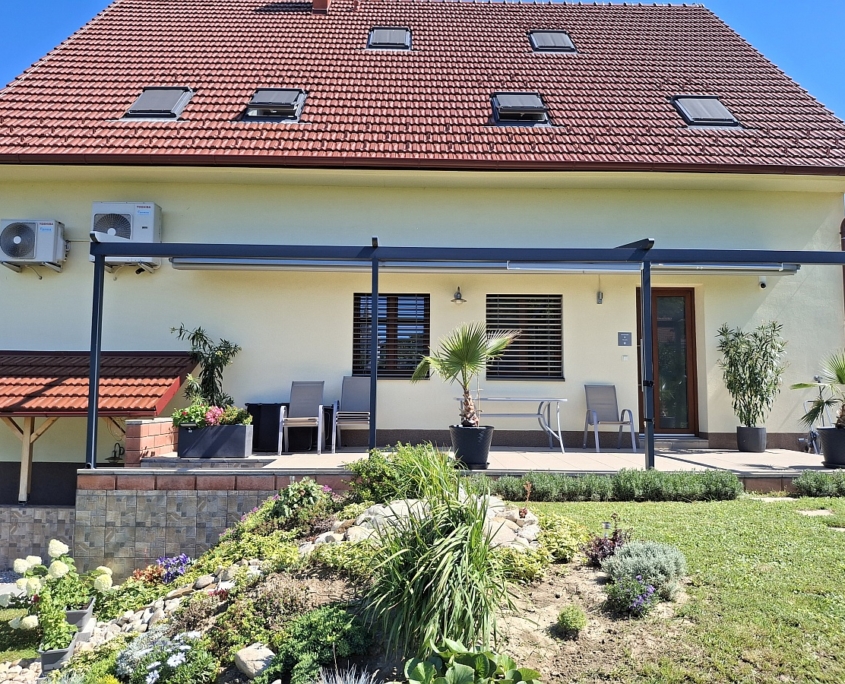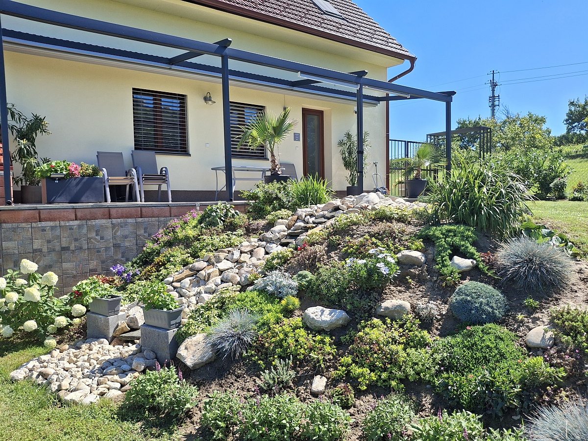 - Vlastní chodba a velká zastřešená terasa (do zahrady)